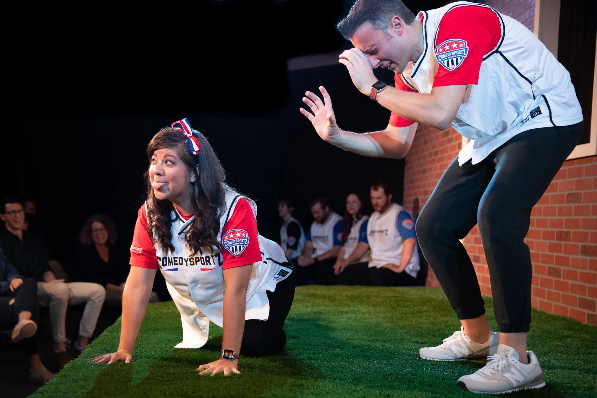 This 10-week class exposes students to the nuts and bolts of long form improvisation. Learn to create and sustain more nuanced and meaningful scenes from fewer audience suggestions. Each week you will explore different techniques for initiating the next scene in the story such as establishing secondary characters, edits and wipes, pursuing objectives, and finding patterns. During the final session, the class will perform a long form improv show on the ComedySportz field for an invited audience of family and friends!